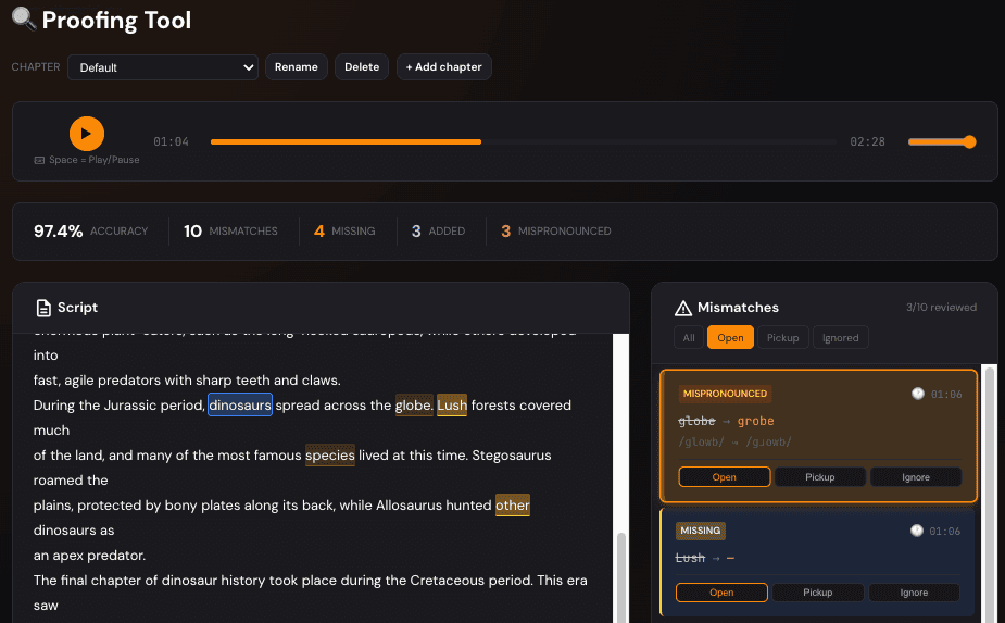 Here's what VO Sidekick's proofing tool does: